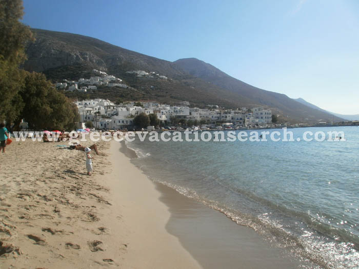 - Egiali (Northeast Amorgos): This long beach that starts from the harbor and ends in Fokiotrypa is very popular, as it provides nice sand and easy access. Along the beach you can find beach bars and rooms to let, although the beach is not organized.