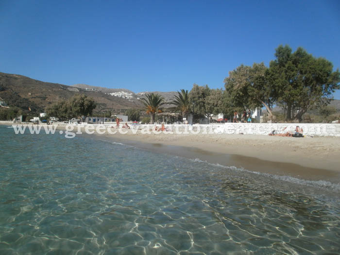 - Kalotaritissa (Southwest Amorgos): The windless beach with the green-blue water is located at the south-west edge of Amorgos. It attracts a lot of people because of the nice sand and the easy road access, while there are also sunbeds and a cantine.