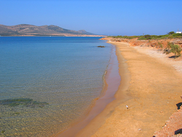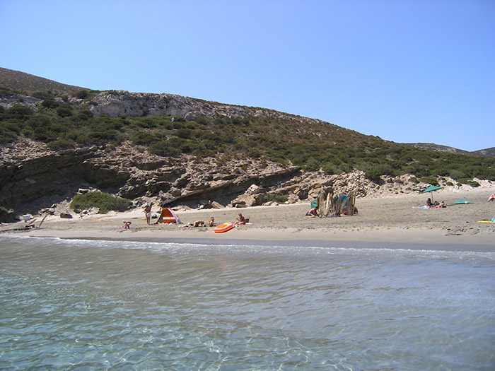 - Theologos (North Antiparos): A lovely beach located at the northern edge of the island, popular from camping and nudists. It has a calm shallow sea, superb light sand and cedar trees. It is located close and a bit north of the town, with easy access through the road.