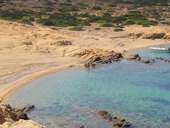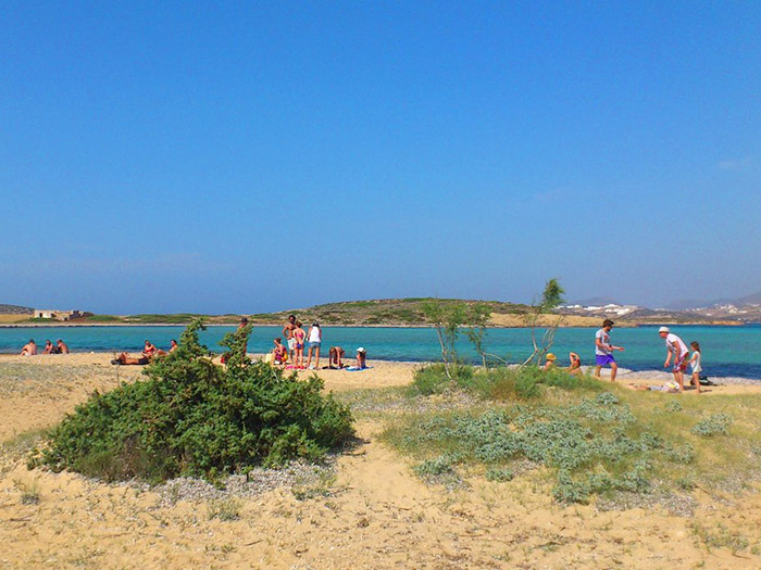 - Agios Spyridonas (North Antiparos): A large stretch of sand at the north, very close to the town, with several tamarisks along the coast. It is ideal for families with little kids because of the calm shallow sea.