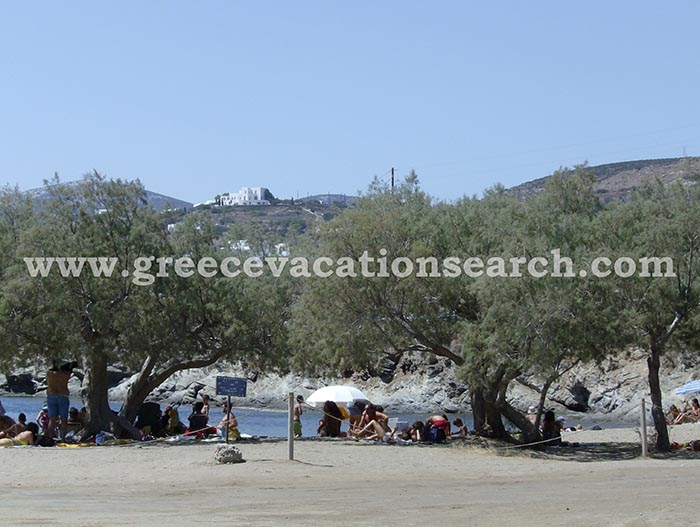 - Chrysopigi (Southeast Sifnos): A lovely rather small beach with sand next to Chrysopigi Monastery. Along the beach there are large tamarisk trees, and right behind them lies a tavern with parking space.