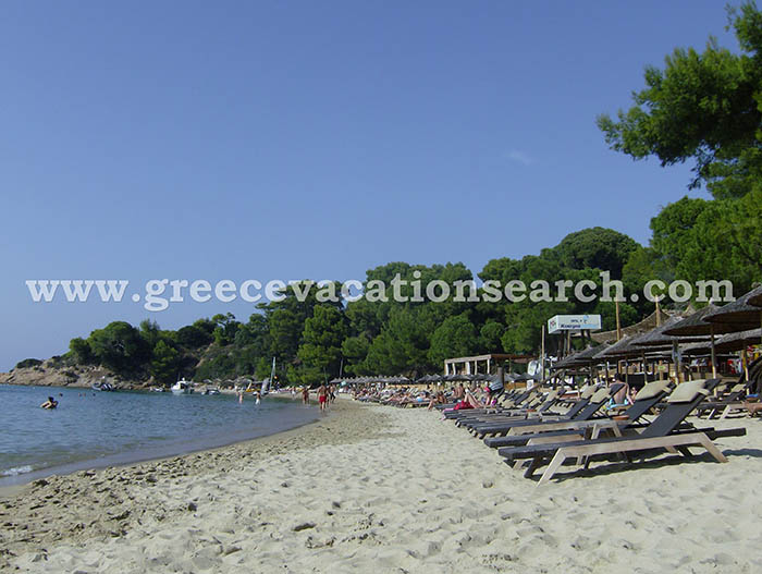 - Agia Paraskevi (South Skiathos): A long beach with thin golden white sand. This is one of the top ranking beaches of Skiathos, partly due to the easy access. It is an organized beach with several hotels and taverns around.