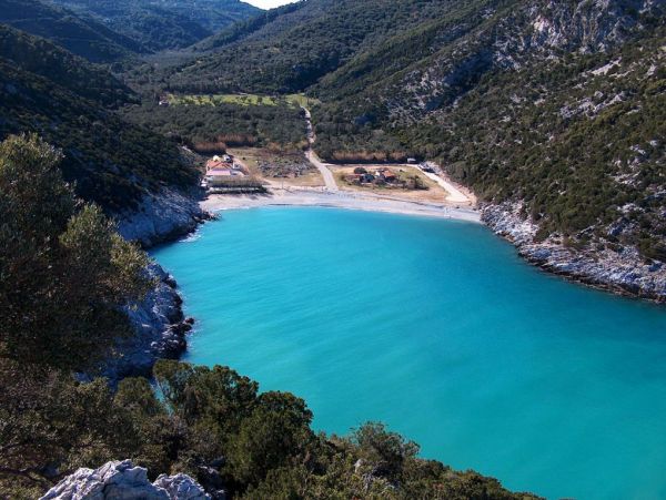 - Glysteri (Northeast Skopelos): It is located at the center of Skopelos, facing east, a bit north of Skopelos town. The beach is located in a superb locations, as it is in a verdant bay which provides protection from the wind. The beach is relatively small in size but it has nice turquoise water and pebble. It is suited for solitude and relaxation, as it is not very known. On the beach there are a few umbrellas, sunbeds, a tavern and a shower. There is easy access to the beach but you will have to pass through a graphical olive grove.